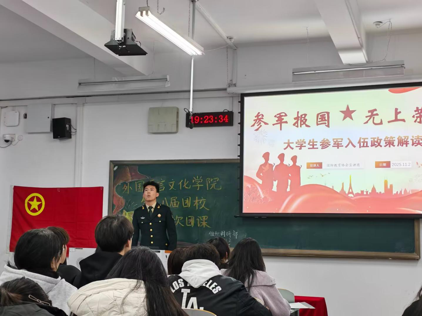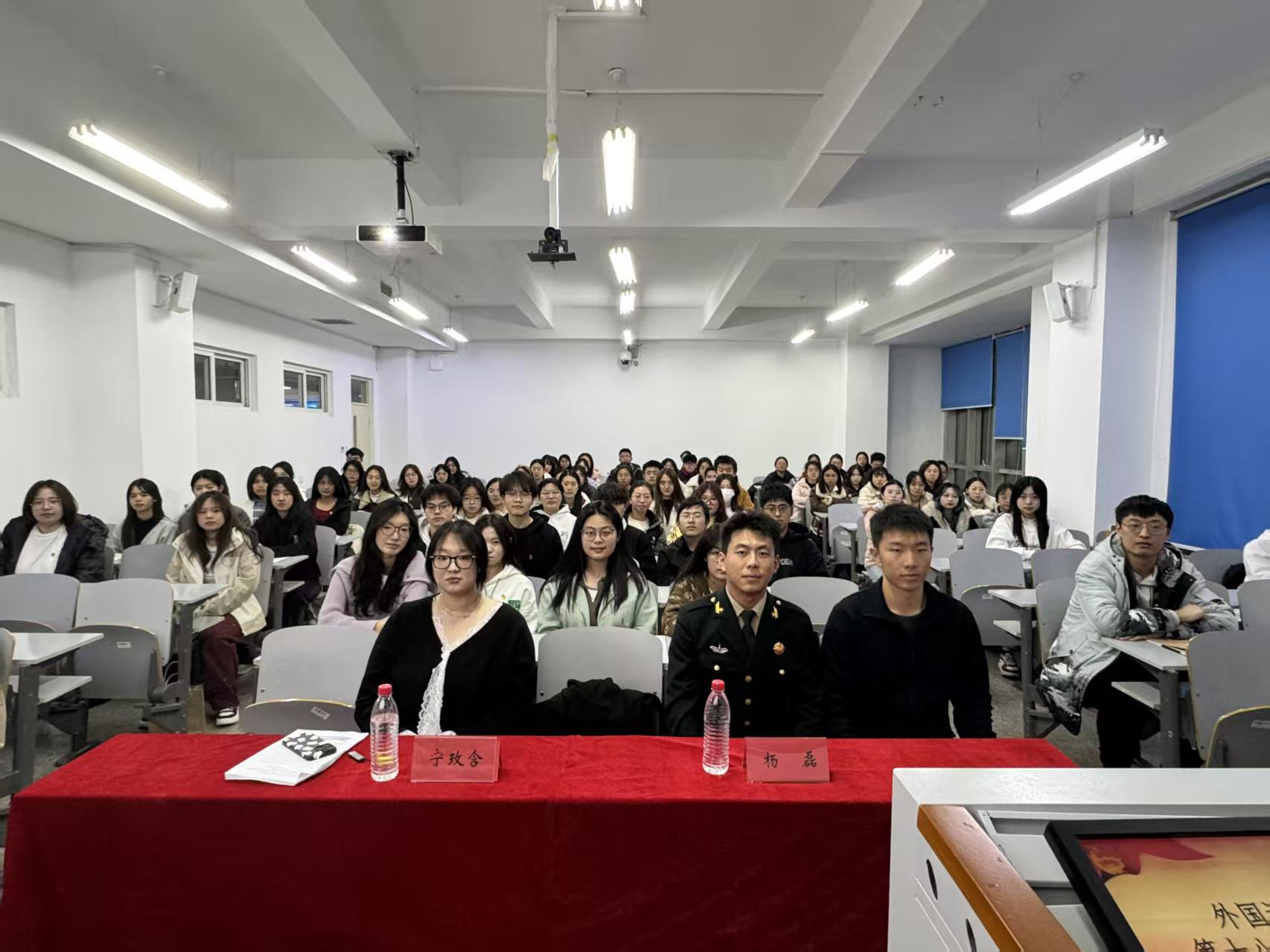 承接文化认同所激发的民族自豪感与责任感,杨磊以“共赴百年之约,践行报国使命”为主题展开宣讲。他系统解读了大学生应征入伍的年龄要求、发展路径、待遇保障及学费补偿等优惠政策。通过分享何星宇、包一杭等我校学子在军营锻炼成长的先进事迹,生动展现了参军报国对个人成长的深刻影响,并指出这既是青年融入强军事业的重要平台,也是将爱国之情化为报国之行的具体实践。