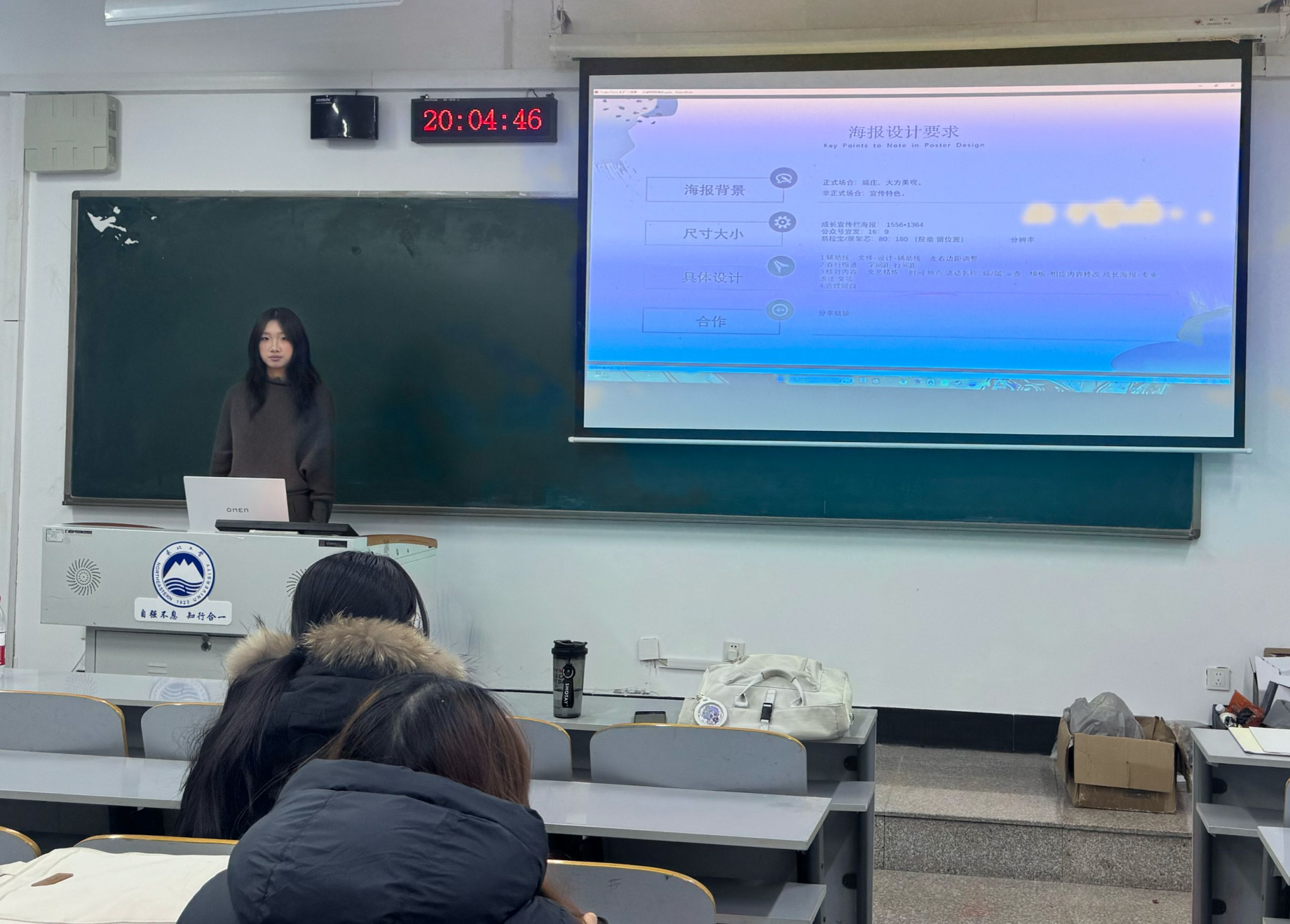 为全面提升学生的宣传实践技能与综合审美素养,我院宣传部于12月21日在工学馆106教室举办了一场以“技能培训助力宣传,美育与劳动融合发展”为主题的劳动技能培训活动。本次培训内容充实、形式生动,紧密围绕新媒体宣传中常用的图像处理与海报设计展开,分为理论讲解与实操演练两个环节,吸引了众多对宣传设计感兴趣的同学积极参与。